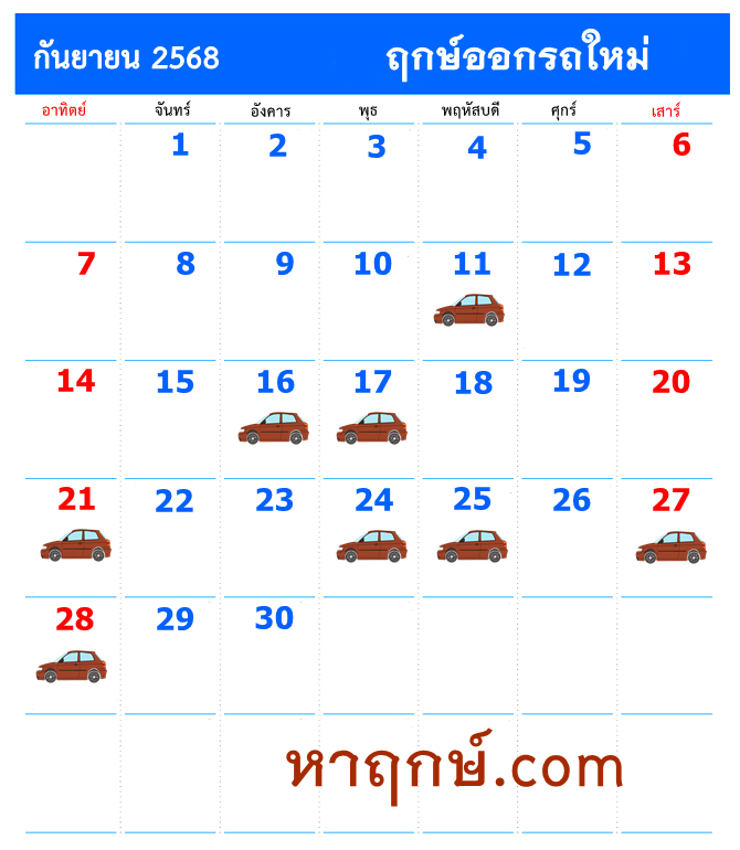 หาฤกษ์ ออกรถใหม่ เดือน กันยายน 2568
