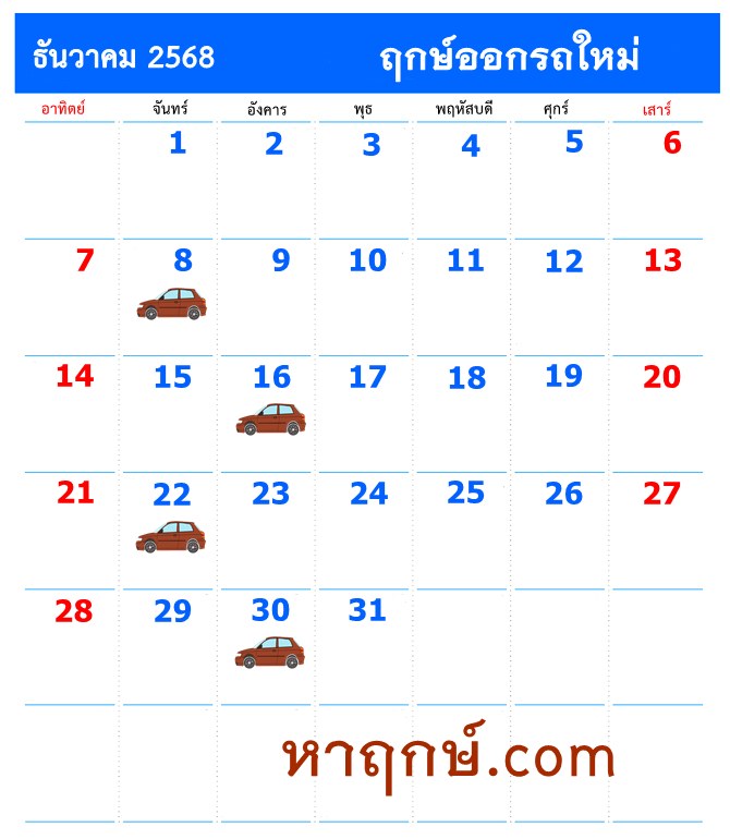 หาฤกษ์ ออกรถใหม่ เดือน ธันวาคม 2568