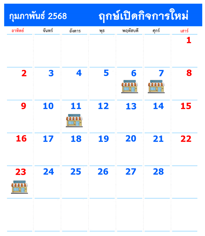 | หาฤกษ์ เปิดกิจการใหม่ เดือน กุมภาพันธ์ 2568 |