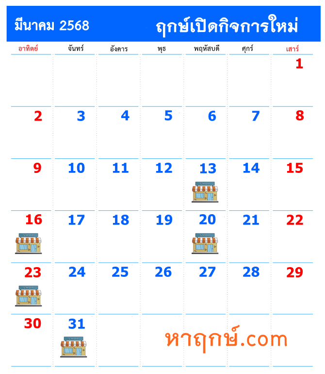 | หาฤกษ์ เปิดกิจการใหม่ เดือน มีนาคม 2568 |